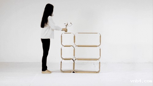 The bookshelf is consisted of cells of two sizes. There are some powerful magnets inside for building up different shapes whatever you like.This method does not prevent the beauty of appearance, but makes it solid and fits the right places automatically.