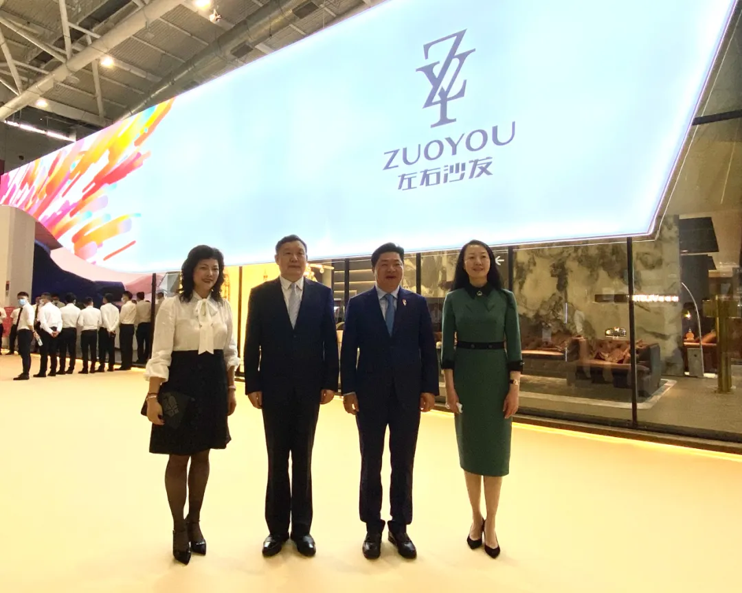 展会期间,徐祥楠理事长、屠祺副理事长兼秘书长参观了左右沙发展位,黄华坤董事长介绍了「左右沙发 沙发专家」的全新定位。从真皮沙发到布艺沙发,从大众市场到精众市场,左右沙发以多样化产品系列布局,发力不同细分市场,培育新的增量,从而保持整体稳定的增长,获得了全国各地众多嘉宾,业界人士及媒体朋友们的关注与认可。