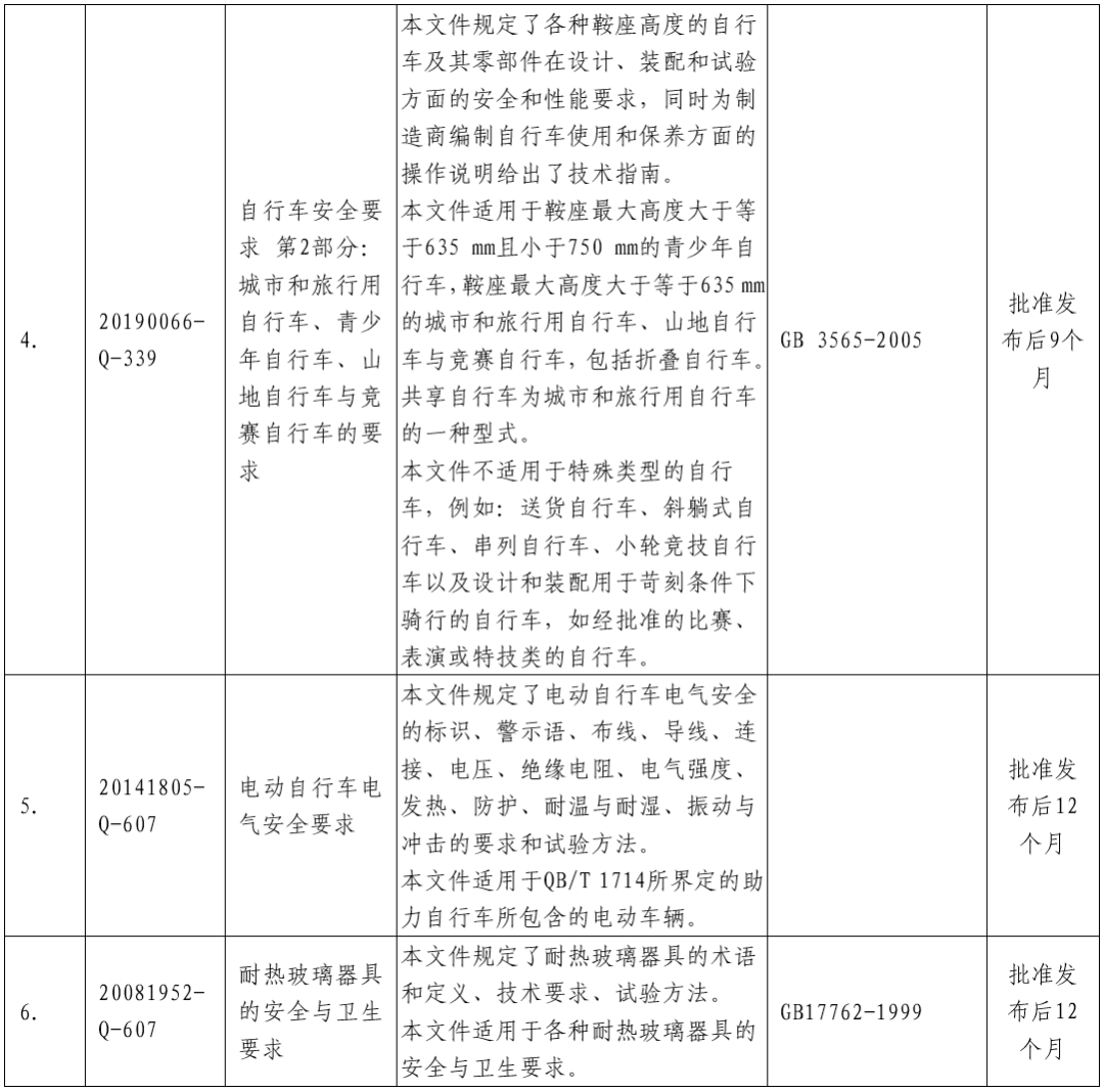 7项强制性国家标准主要内容等一览表
