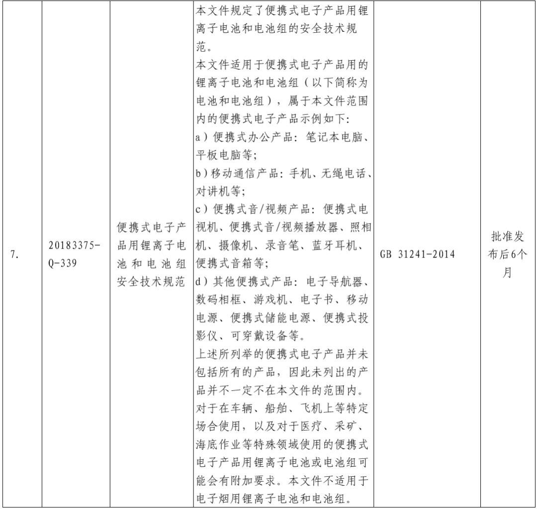 已组织完成《便携式电子产品用锂离子电池和电池组 安全技术规范》等7项强制性国家标准的制修订工作(见附件1)。在标准批准发布之前,为进一步听取社会各界意见,现对标准报批稿及编制说明(见附件2)予以公示,截止日期2022年6月6日。