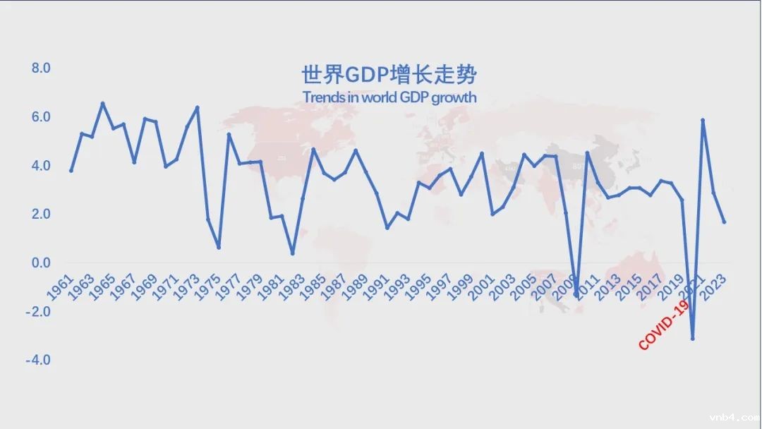 回顾过去六十年全球GDP发展过程,世界经济已呈现降速趋势,而2020年新冠疫情发生后,世界GDP降幅超过了历次经济危机,尽管2021年出现短暂反弹,但是根据世界银行最新《全球经济展望》报告,2022年世界GDP增长率仅为3.1%,2023年将进一步降低至2.1%。
