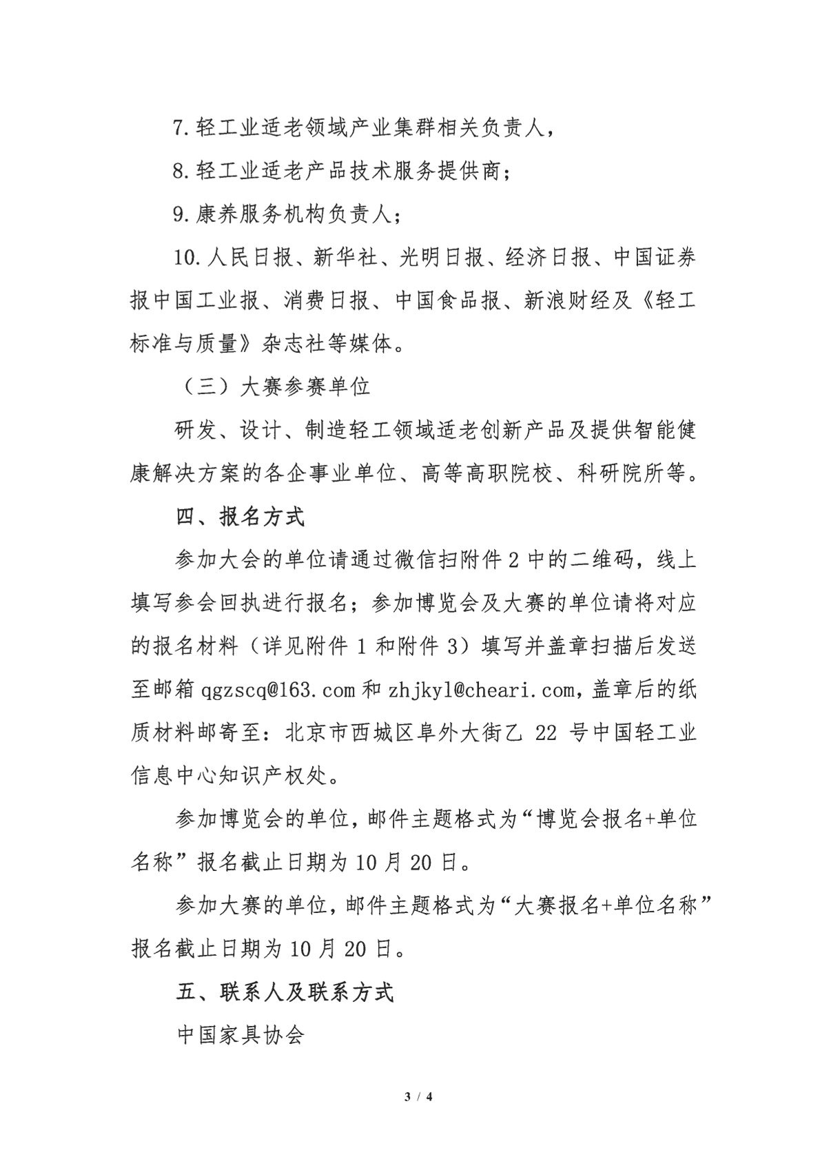 关于组织参加“首届轻工适老创新产品博览会、轻工适老创新产品发展大会暨第二届全国轻工适老创新产品及智能健康解决方案大赛”的通知