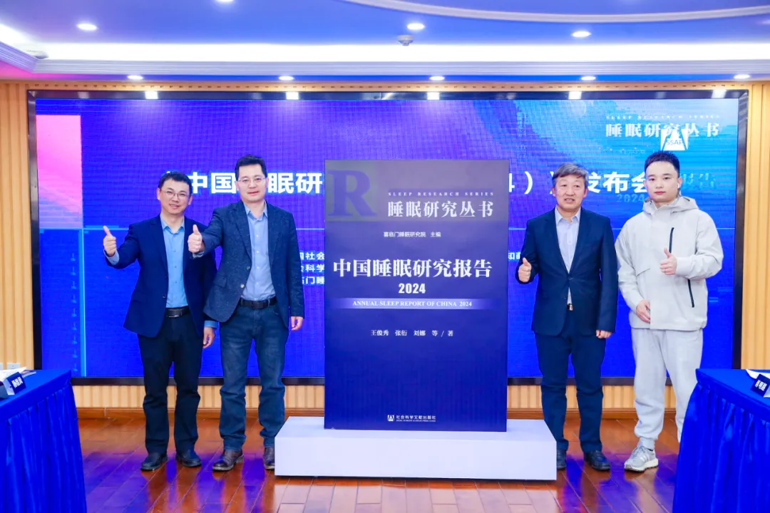 中国社会科学院社会学研究所副所长杨典、社会科学文献出版社副总编辑童根兴、中国社会科学院社会学研究所社会心理学研究中心主任王俊秀、喜临门品牌中心总监孙竞共同揭幕《中国睡眠研究报告2024》
