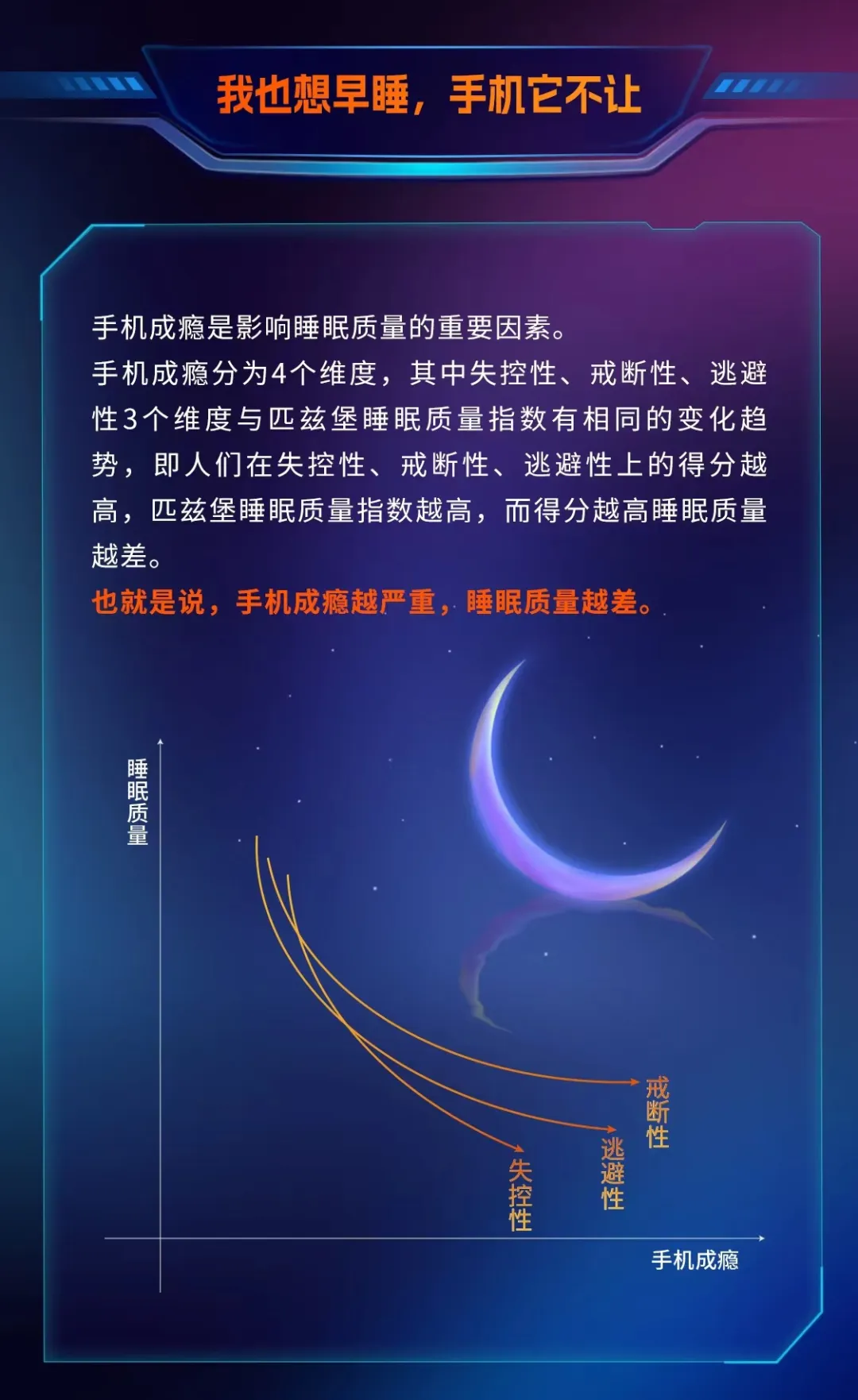 随着社会的发展,智能手机拓展社交、娱乐和学习方式的同时,带来了手机过度使用和可能增长的手机成瘾问题。报告指出,睡前使用手机、上网的行为致使睡眠拖延成为睡眠质量下降的主要原因。相较2022年,人们在2023年睡前使用手机、上网的行为致使睡眠拖延现象更多了。因此,提高睡眠质量,需要降低居民的手机成瘾程度。