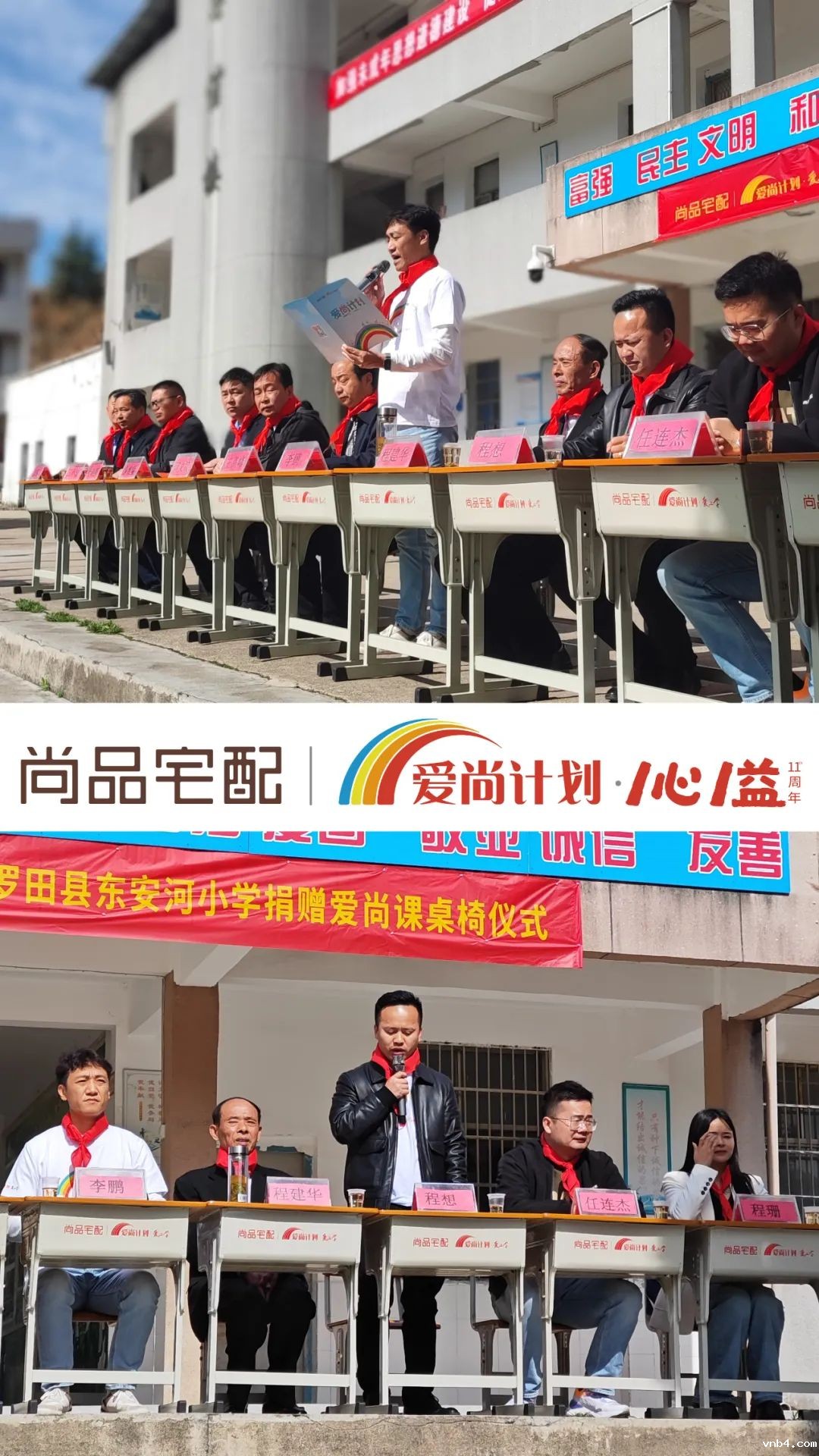 为了帮助大山里的孩子们改善学习环境,爱尚计划志愿者代表——尚品宅配副总经理李鹏与尚品宅配爱心加盟商程想先生一行人,翻山越岭,为罗田东安河小学送去了165套崭新的课桌椅、165盒彩笔,助力孩子们安心无忧学习,守护大山孩子的“学习梦”。