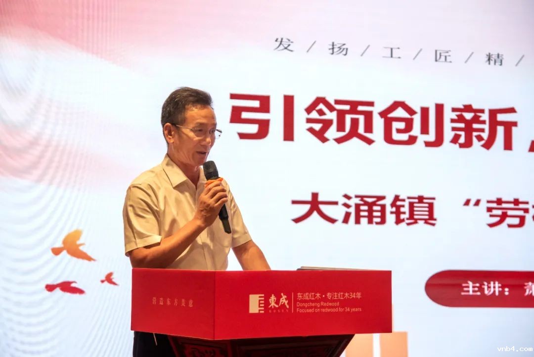 4月16日下午,“劳模工匠”结对企业,助力“百千万工程”签约启动仪式在东成红木文化体验馆举行。大涌镇人大主席、镇总工会主席林少杰,中国红木家具技术专家曹新民,中山供电局大涌分局总经理胡群勇同志,东成家居总经理张奕海及劳模和工匠代表等参加了启动仪式。