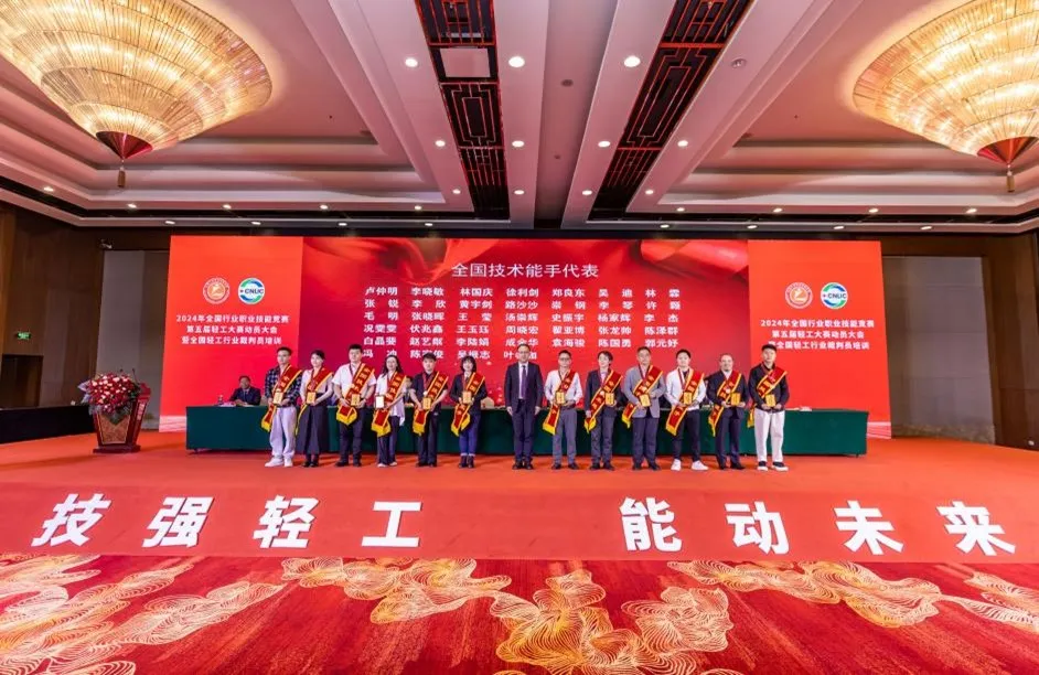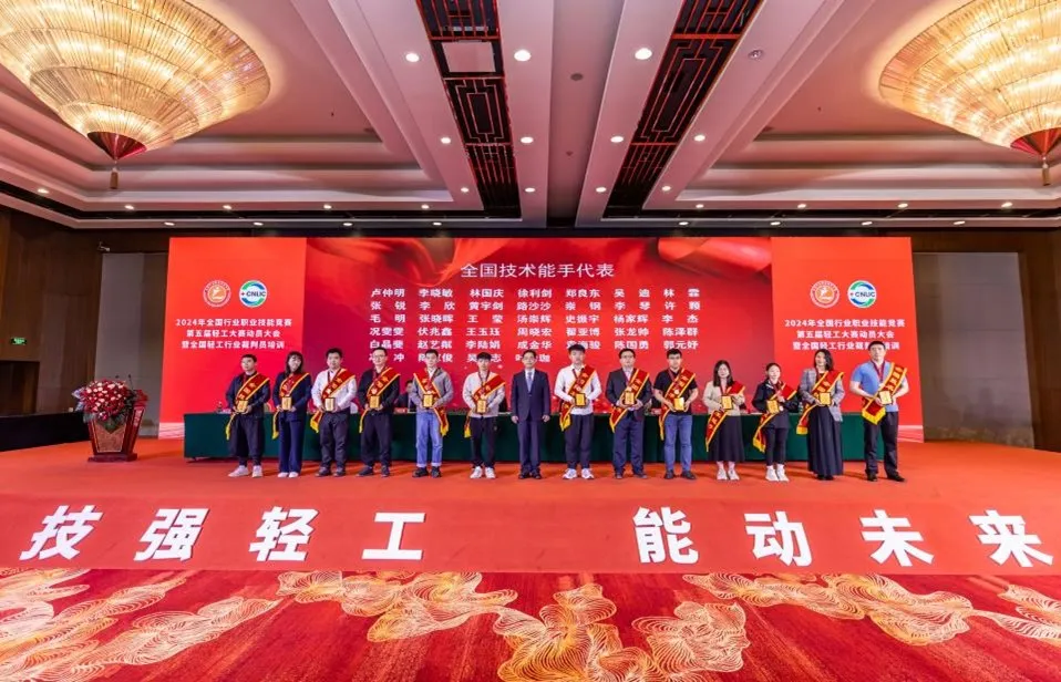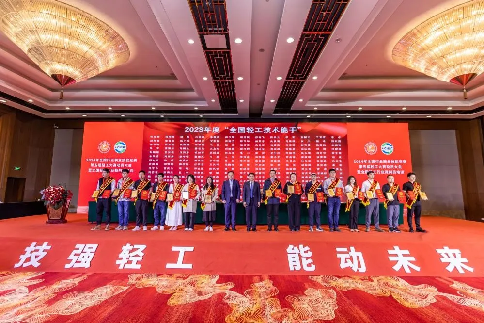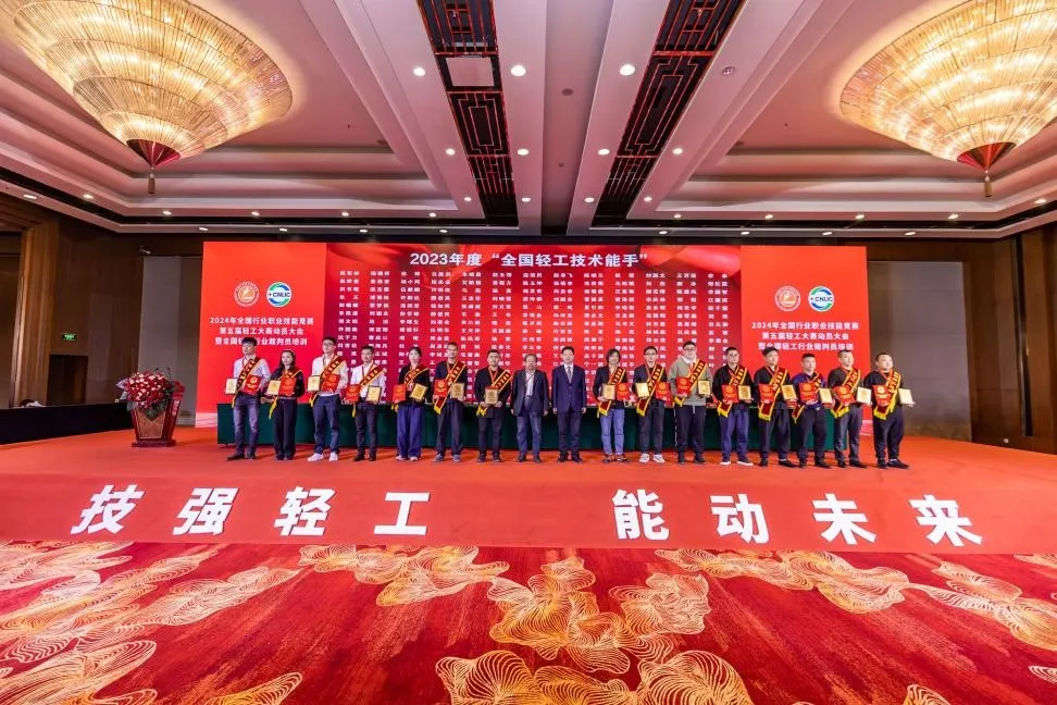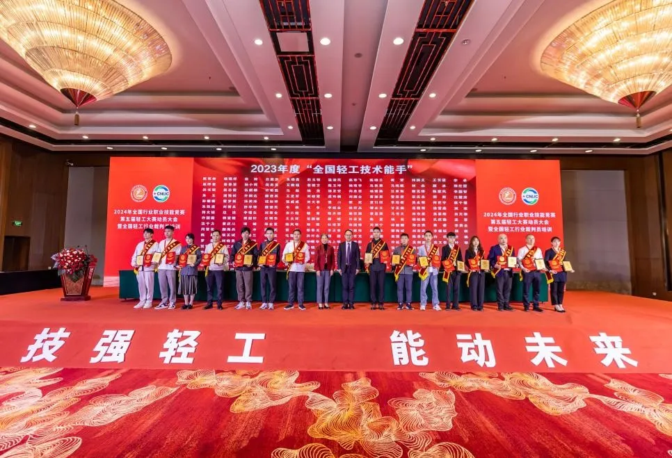大会为第二届全国技能大赛获奖选手,获得2021-2022年“全国技术能手”荣誉称号的优秀选手及2023年“全国轻工技术能手”荣誉称号的优秀选手进行了表彰。
