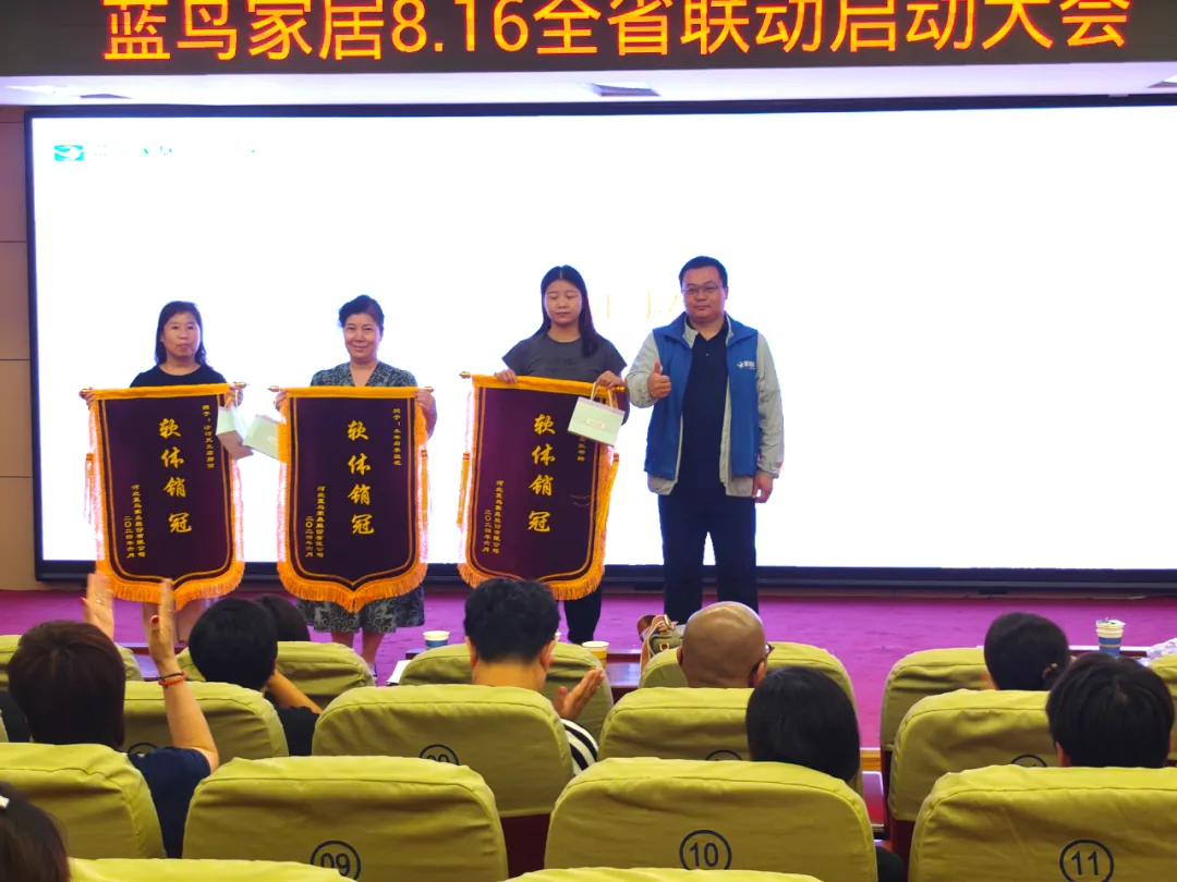 816启动仪式成为大家关注的焦点,会场上来自各地区各个专卖店200余人,共同为816的全省联动家装大促拉开帷幕,蓝鸟家居销售总监郑守现就816全省联动家装做了详细的活动说明,助力蓝鸟家人们一同全方位迎战家居市场