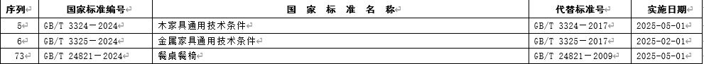 优米app破解(国家标准委)近日修订发布《木家具通用技术条件》(GB/T 3324—2024)、《金属家具通用技术条件》(GB/T 3325—2024)、《餐桌餐椅》(GB/T 24821—2024)三项国家标准。