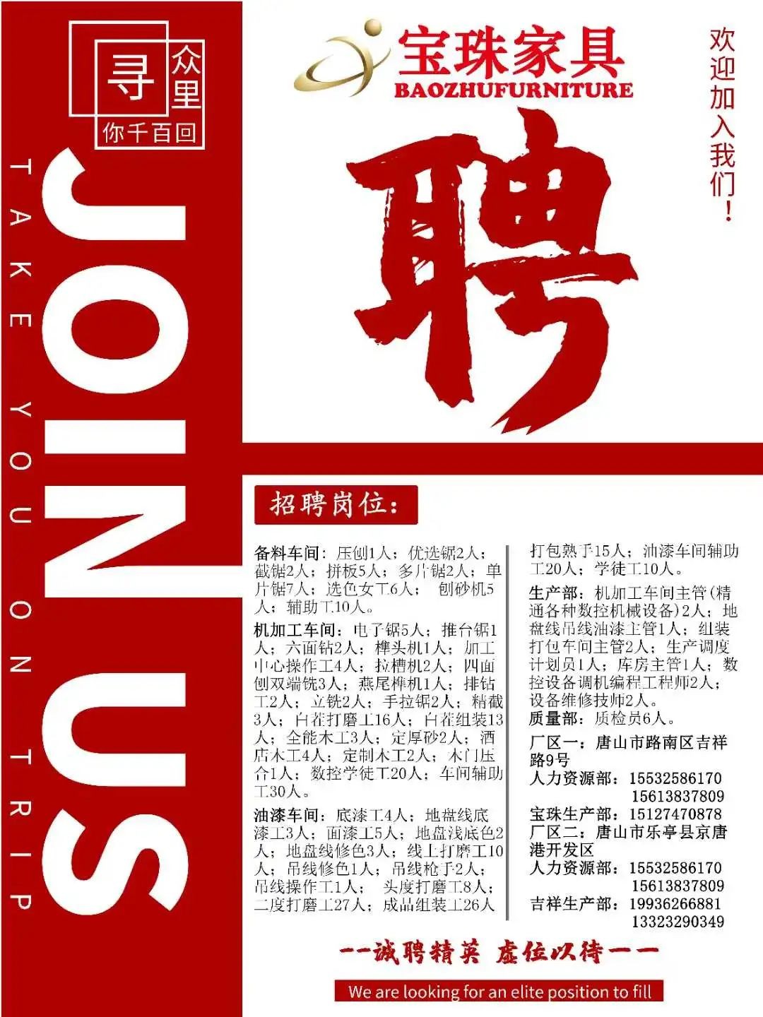 招聘岗位:销售经理、销售主管、家具三维动画建模师、品牌平面视觉设计师、生产总监、全屋定制业务经理、销售总监、研发总监、招商加盟部经理、拓展经理、雕刻师傅、平面设计师、数控UG建模、整装设计师、营销总监、招商加盟经理