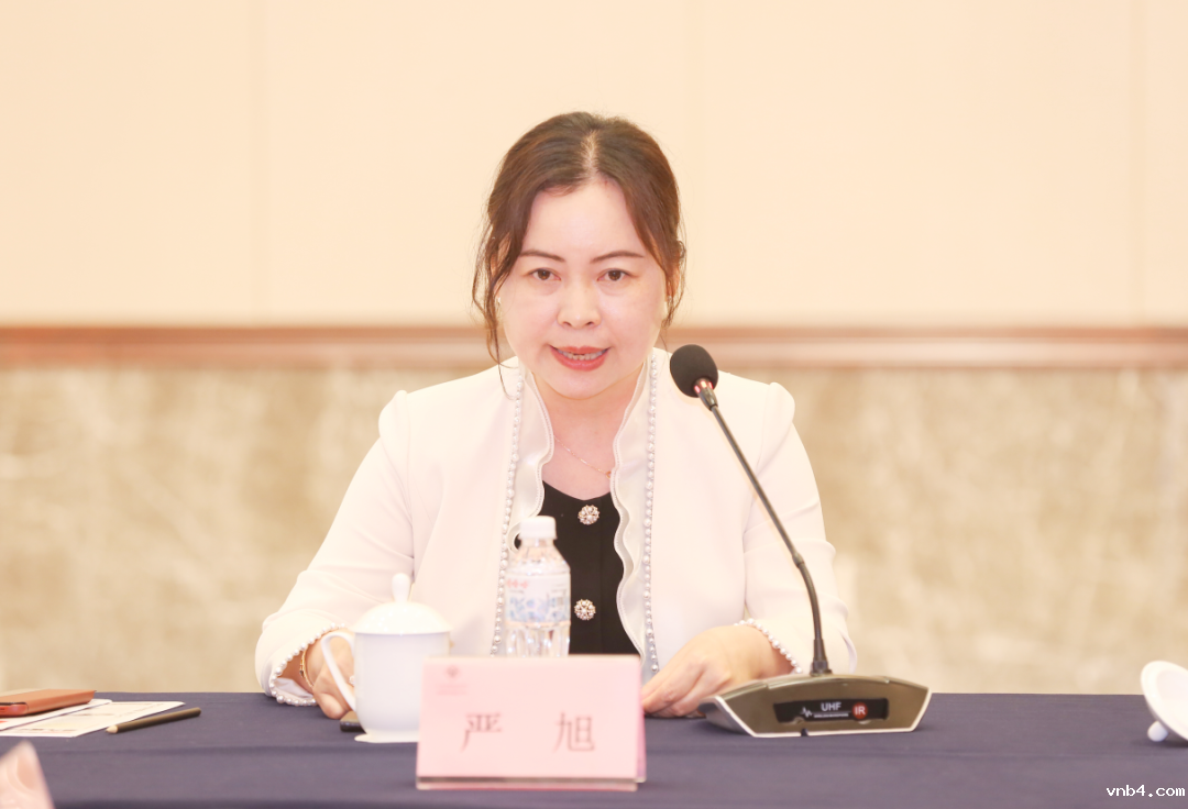 东阳市花园红木家具开发有限公司董事长严旭致欢迎词,她向会议的成功召开表示热烈的祝贺,并全面介绍了花园村红木家具产业的发展成就与未来规划。她表示未来将继续以“品牌引领”为抓手,拥抱消费新时代,探索红木家具的数字化、智能化转型之路,努力推动中国传统家具行业的繁荣发展。