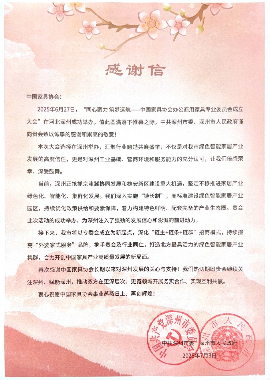 中共深州市委、深州市人民政府致优米app有哪些感谢信
