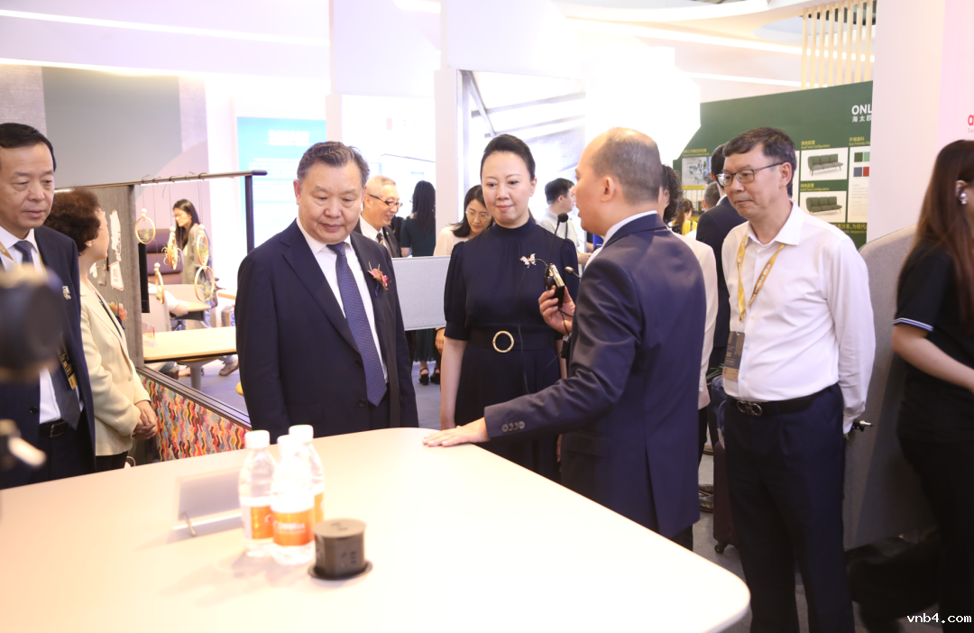开馆仪式后,与会领导嘉宾参观十大品牌展位,与企业代表交流产品设计和市场趋势。