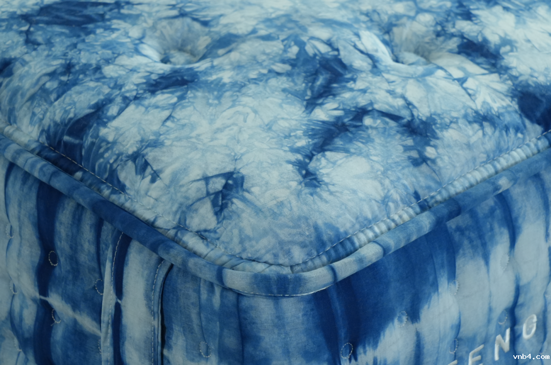 该系列不仅深植于传统植物染手工技艺,更融合现代睡眠科技,致力于在文化传承与健康生活之间建立创新联结。作品以手工染制的天然靛蓝面料为载体,呈现有机而富有韵律的纹样,同时内置凤阳专利睡眠支撑系统,兼顾透气、护脊与精准承托,让传统艺术与现代科技相得益彰。整个系列模糊了非遗传承与当代设计的边界,在提供身体舒适支撑的同时,更以柔软可触的艺术语言,营造出一段与自然相连、与手艺共鸣的沉浸式感官体验。这既是一场跨越时空的工艺对话,也是一次面向未来的睡眠革新。