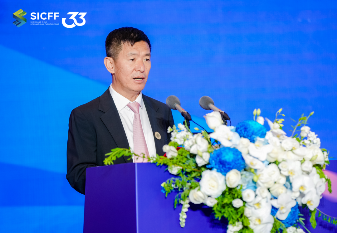 理事长徐祥楠致辞并宣布展会开幕。他表示,霸州胜芳是 共建命名的中国特色定制家具产业基地,以家具产业为核心支柱,推动制造业与商务会展、交通物流、人才教育的融合发展。霸州市委、市政府和胜芳镇委、镇政府始终将家具产业作为优势主导产业,在园区建设、要素保障、品牌推广等方面推出务实举措,有力提升“胜芳家具”的行业影响力与市场美誉度。胜芳国际家具博览会是北方特色定制家具经贸合作、行业交流的重要窗口,本届展会聚合呈现适老家具、智能家居、绿色建材等新兴品类,举办系列专题活动,汇聚行业专家与全球客商,助力企业拓展市场、提升品牌价值。家具行业是承载民生改善、拉动经济增长的重要产业,希望胜芳家具人依托霸州的政策优势、博览中心的平台势能,深化协同、深耕创新,为中国家具行业行稳致远、服务美好生活作出更大贡献。