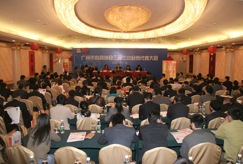 参加此次会议并作重要讲话,对协会十五年的成绩给予了肯定,对协会未来发展给予了鼓励,对协会下一步工作提出了新的希望和要求。广州市家具协会会长刘显明代表第三届理事会,向大会作十五周年工作报告。他指出,自1993年以来的十五年,是广州市家具行业跟随我国改革开放进程和经济发展步伐腾飞的十五年,也是广州市家具协会从容应对各种考验、坚持与时俱新、不断胜利前进的十五年。十五年来,广州市家具协会紧紧围绕协会宗旨,以促进广州市家具行业发展为目标,以实现会员厂家持续、健康发展为己任,在促进家具业生产和贸易、维护和保障行业权益、协助会员厂家之间技术交流、发掘海内外市场等方面发挥了积极作用,在加快推进广州家具业绿色环保进程、提高家具开发及设计能力、建设和谐家具行业等事项上作出了应有贡献。刘显明强调,2008年,家具行业将获得前所未有的历史性发展机遇,新形势、新任务也对协会的工作提出了更高的要求,协会将继续抢抓机遇、加快发展,与广大会员单位团结协作、继往开来,为推进行业的又好又快发展而努力。2008年协会工作的重点是做好“七个进一步”:进一步做好行业和企业调研,更好为会员服务;进一步加强与政府部门沟通协调,促进行业发展;进一步组织和举办各类研讨与培训,引导企业健康和持续发展;进一步做好家具展览相关工作,为企业拓展国内国际市场提供机会;进一步搞好十环认证与家具设计师评定工作,促进行业规范;进一步加强家具企业知识产权工作,保障企业合法权益;进一步办好《广州家具》报,为会员单位提供更好信息。会议通过了增补广州市番禺永华家具有限公司董事长陈达强、广东优派家私有限公司执行董事李炽华、广州市世尊家具有限公司总裁王杰强为协会副会长。通过了《关于对广州市家具协会成立十五周年相关人员的表彰决定》,《决定》由广州市家具协会副会长、佛山顺德皇朝家私有限公司董事长岑国林宣读。原广州市副市长、广州市家具协会永远名誉会长姚蓉宾对会议作了总结讲话,她说,会议是在特殊时期召开的特殊会议,具有重 要纪念意义和现实意义,协会要继续与时俱进、开拓创新,保持自身特色、发扬光荣传统,坚持服务、提升素质,才能在长期发展中推进行业的又好又快发展。